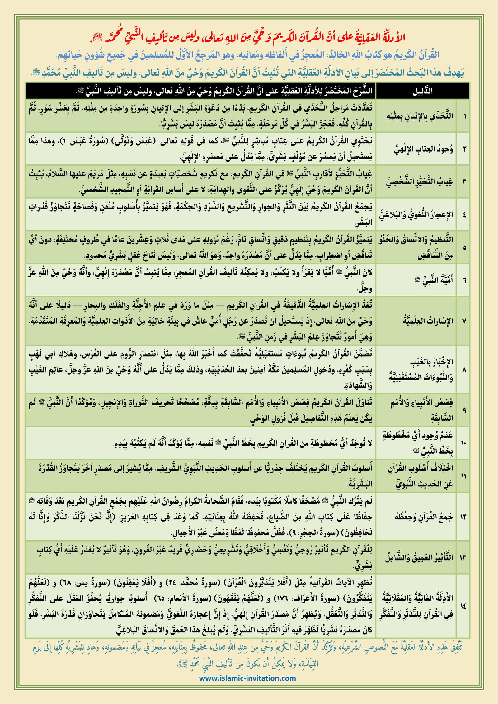 يَحْتَوِي القُرآنُ الكَريمُ على عِتابٍ مُباشِرٍ لِلنَّبيِّ ﷺ، كما في قَولِهِ تعالى: ﴿عَبَسَ وَتَوَلَّى﴾ (سُورَةُ عَبَسَ: ١)، وهذا مِمَّا يَستَحيلُ أنْ يَصدُرَ عن مُؤلِّفٍ بَشَرِيٍّ، مِمَّا يَدُلُّ على مَصدَرِهِ الإِلٰهِيِّ