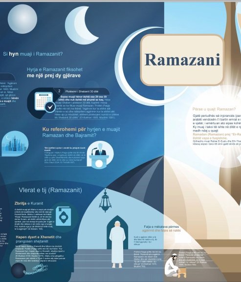 Ramazani Kjo infografikë bën fjalë mbi muajin Ramazan, përse u emërtua kështu, vlerat e tij, betejat dhe çlirimet më të shquara islame që kanë ngjarë në të, si dhe për mënyrën ekonfirmimit të hyrjes së tij dhe disa dispozita lidhur me të.
