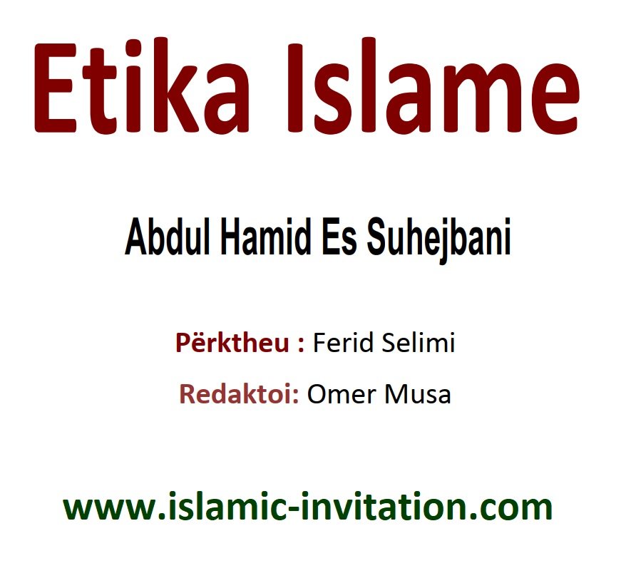 Etika Islame - Ky është një libër përmbledhës që përmban një varg rregullash për të cilat ka nevojë muslimani gjatë jetës së tij të përditshme. Këtë libër ia paraqes si këshillë umetit: Mësim për të paditurin, përkujtim për harrestarin dhe vërej-tje për shpërfillësin e këtyre rregullave. Ky libër është këshillë për besimtarin, që të jetojë me udhëzimet e Pejgamberit (sal-lAllahu alejhi ue sel-lem) - Autor Abdul Hamid Es Suhejbani - ETIKA ISLAME
