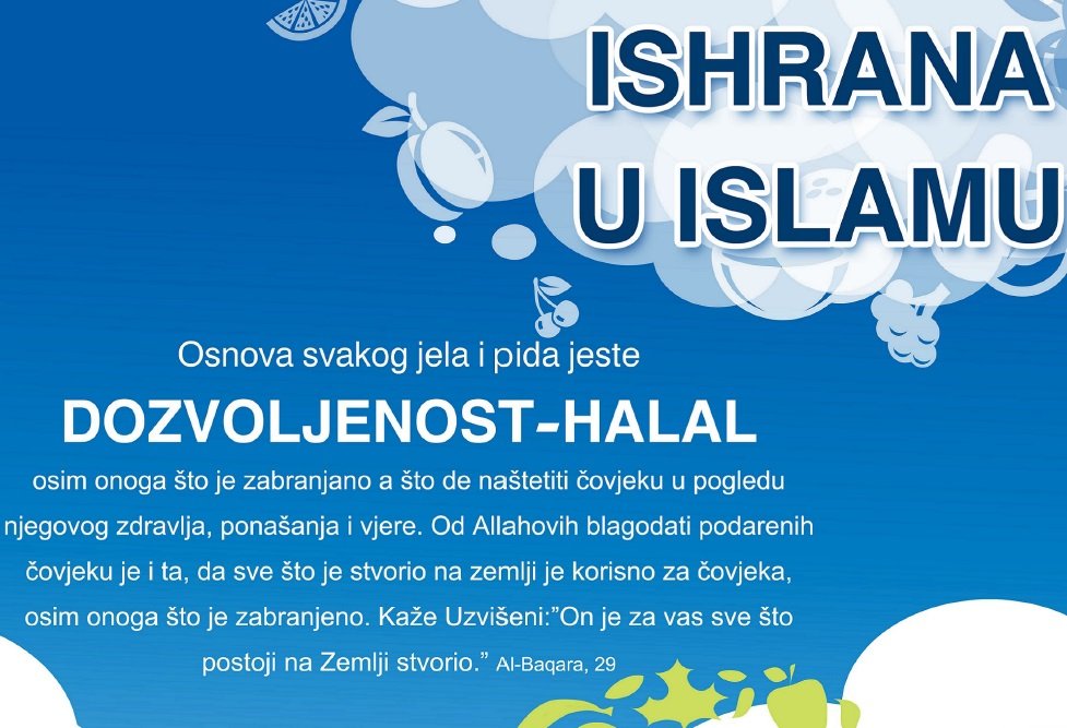 ISHRANA U ISLAMU Informativni pano na temu “Ishrana u islamu” ukazuje na to šta je dozvoljeno a šta zabranjeno jesti i piti. Pojašnjeni su propisi jela mesa životinja, način na koji se životinja može usmrtiti ili loviti.