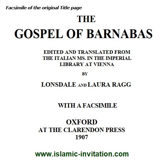 THE GOSPEL OF BARNABAS EDITED AND TRANSLATED FROM THE ITALIAN MS. IN THE IMPERIAL LIBRARY AT VIENNA