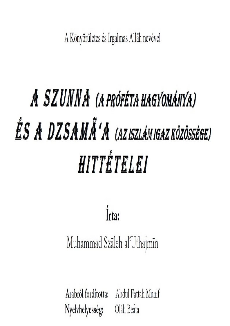 A Szunna (A proféta hagyománya) és a Dzsamá’A (Az iszlám igaz közössége) hittételei