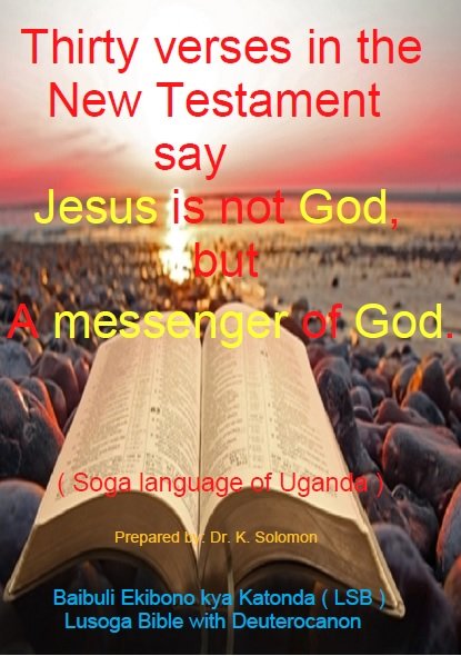 Thirty verses in the New Testament say Jesus is not God, but a messenger of God. (Soga language of Uganda)