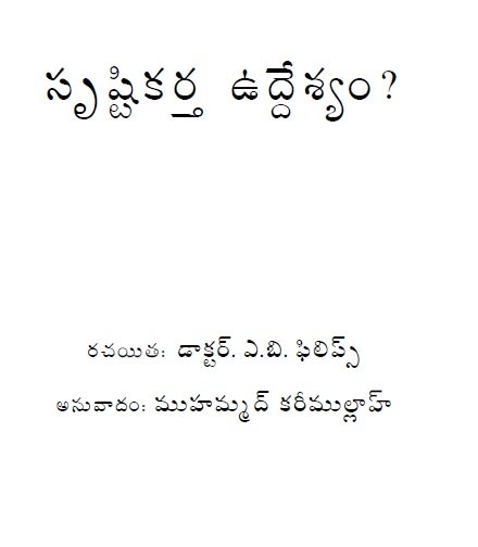 సృష్టికర్త ఉద్దేశ్యం అనే విషయమై వివిధ ధర్మాల అభిప్రాయాలు వాటి గ్రంథాల ఆధారంగా ఈ పుస్తకంలో చర్చించబడినది. చివరిగా ఇస్లాం ధర్మం యొక్క సందేశం - మానవాళి యొక్క సృష్టి కేవలం సృష్టికర్తను ఆరాధించటమే మరియు ఆ సృష్టికర్త పంపిన అంతిమ సందేశం ప్రకారం జీవించటమే అనే సందేశాన్ని ఈ పుస్తకం ప్రామాణిక ఆధారాలతో నిరూపిస్తున్నది.